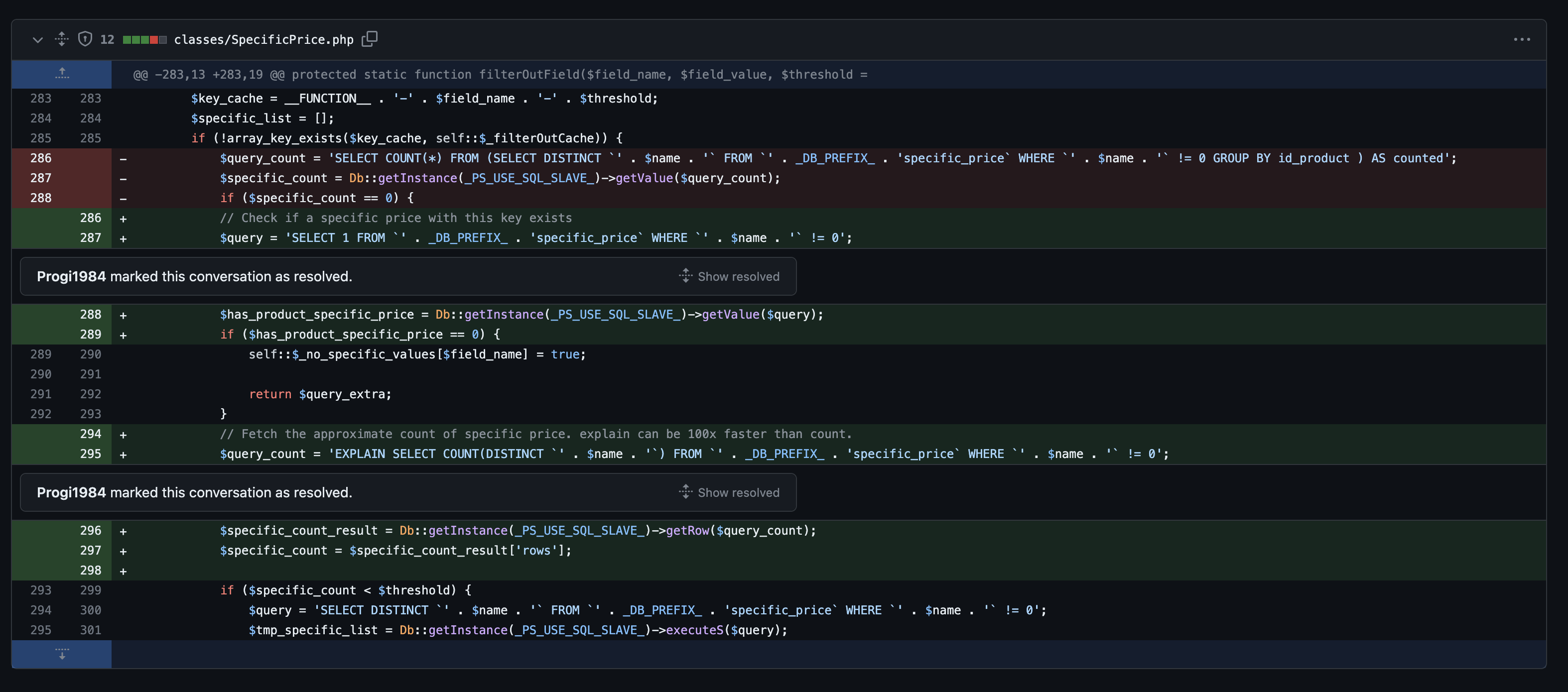 Questa query analizza l’intera tabella ps_specific_price e conta tutti i valori univoci degli id_product. Anziché essere un’operazione veloce da pochi millisecondi, questa query può trasformarsi in un mostro che introduce latenze di vari secondi! Immagina l’effetto su un sito e-commerce molto frequentato: secondi di attesa ogni volta che un cliente tenta di visualizzare un prodotto.